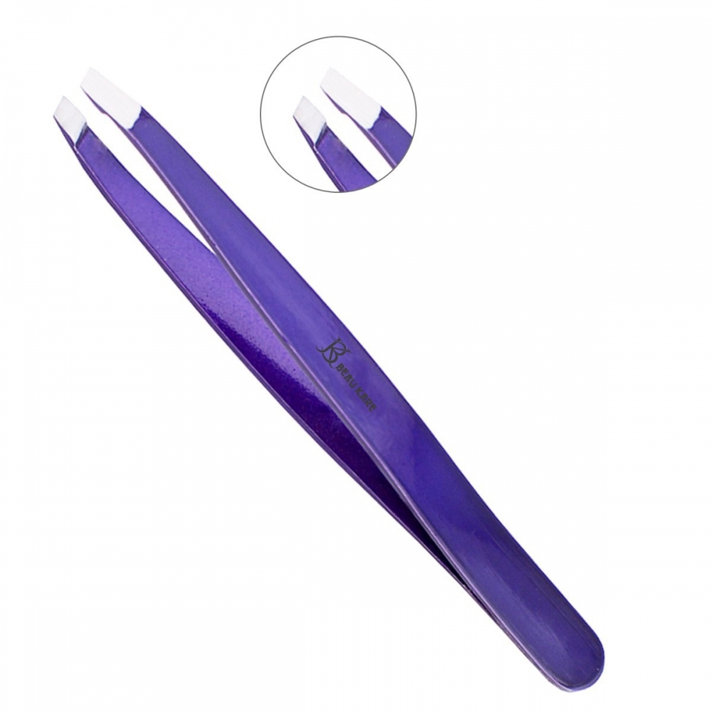 German stainless steel slant tip hand filed, enamel colored 4" tweezer. Precisely removes unwanted hair.