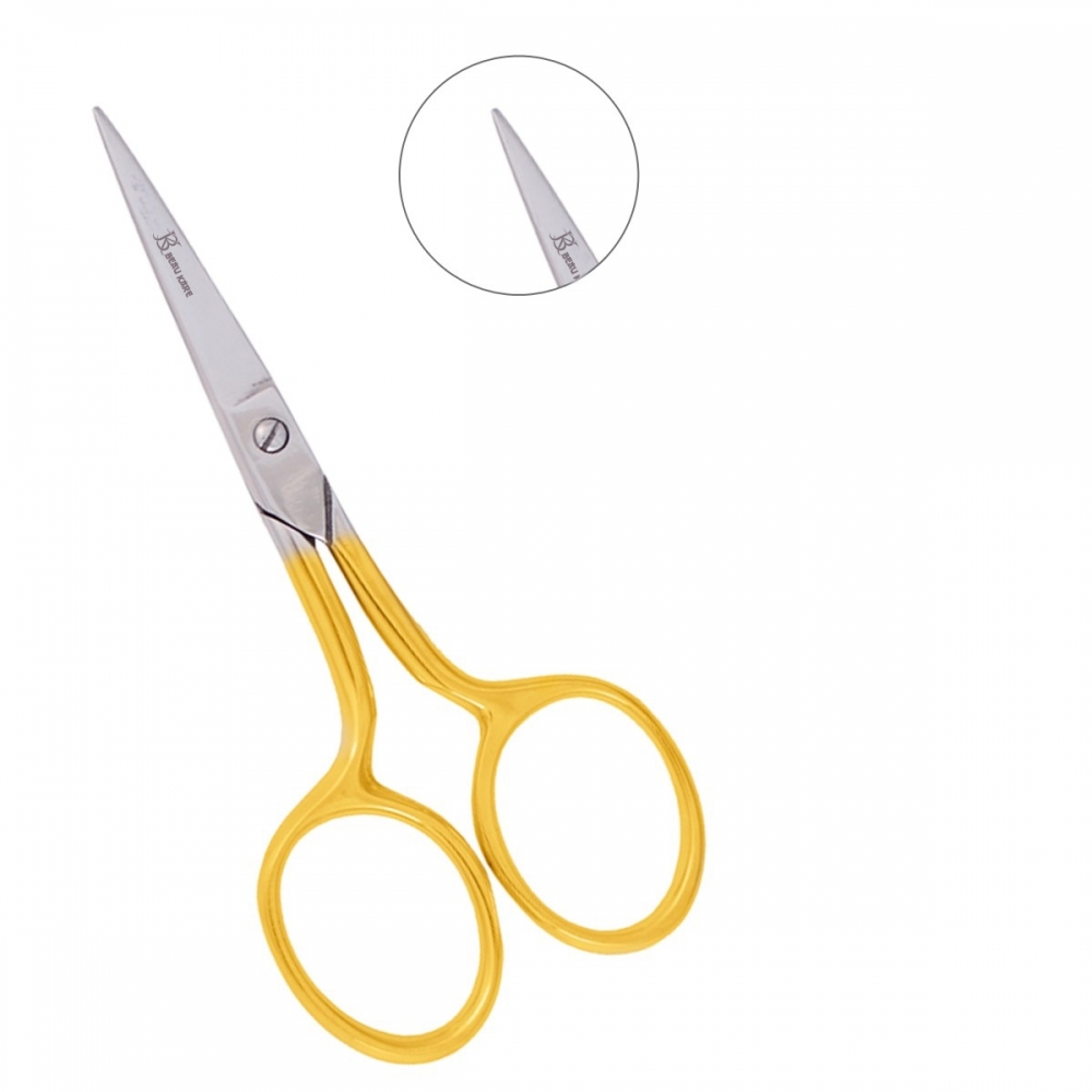 “Mustache Scissor” hand-filed German Stainless Steel gold plated straight pointed blade 4.0” scissor for fiberglass or linen silk